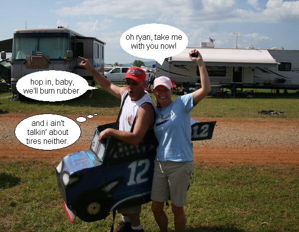 jeff gordon fans vienna and brendon, surrounded by all the other jeff gordon