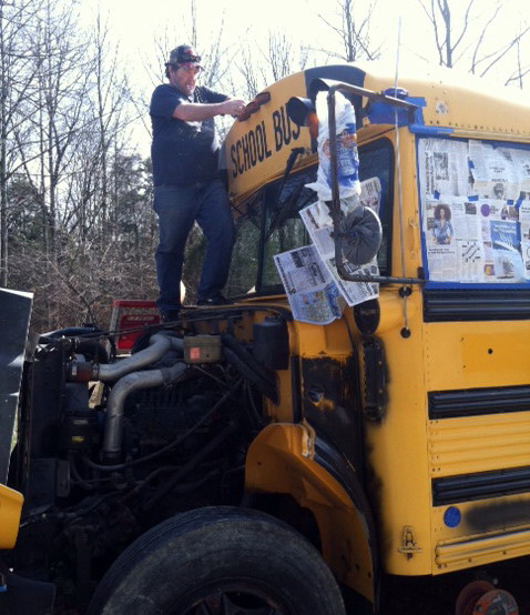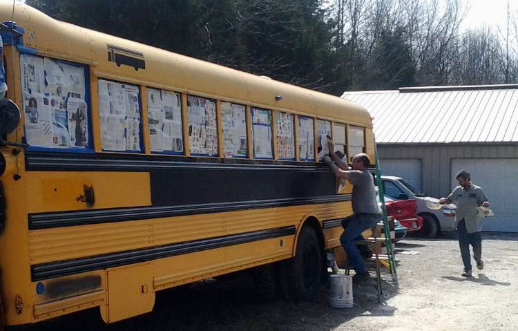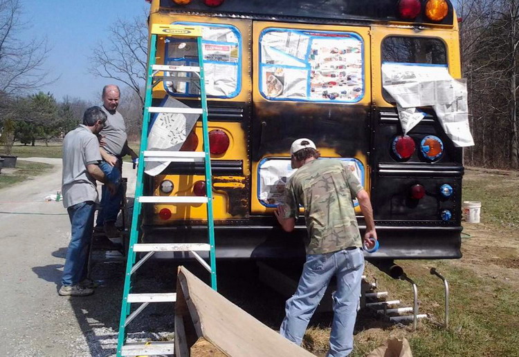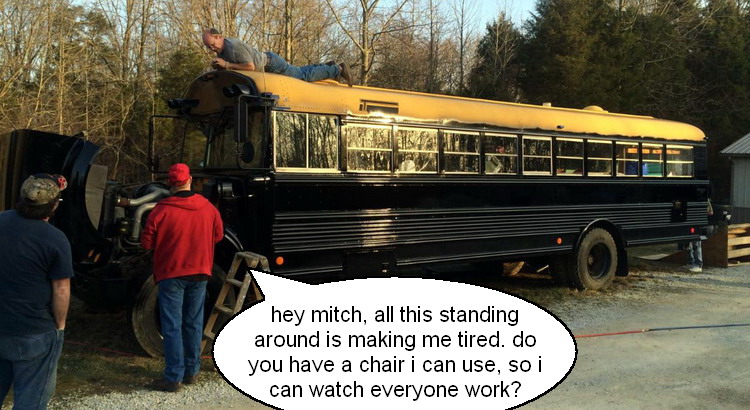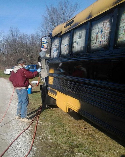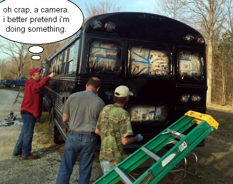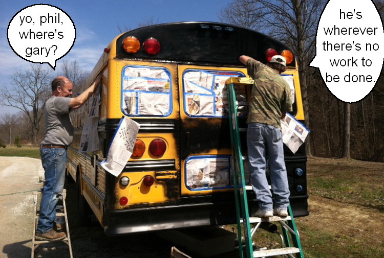 ![]() ![]() ![]() ![]() mitch removes most of the seats to make room for bunks and the "living room". ![]() a few seats will remain for the tables. ![]() ![]() bus 2 is losing it's accommodations, as they move to bus 3. spring 2015 degabus 'auto body and paint huffers' at work. version 3.0 becomes 3.1 ![]() 03.21.15: first, a good scrubbing with steel wool and comet cleanser. ![]() seems gary decided to help out by staying home. ![]() then a hose down and suds. ![]() this is a 'gary free' work zone. ![]() masking off the non-black parts. ![]() ![]() ![]() ![]() ![]() finishing up. ready for paint. ![]() love you too, dean. ![]() loading paint. ![]() dean working the spray gun. ![]() ![]() ![]() ![]() if i have to see this, so do you. i could have lived the rest of my life not seeing mitch's snow white casper ass, again. you can go ahead and try to unsee it, but it's too late! it's burned in and will likely be in that life movie that flashes by, moments before you die. ![]() oh look, there's gary! just in time to slip away and avoid work. ![]() dean nearing the end. ![]() painting complete, removing the masking. ![]() gary stands frozen in a trance, mesmerized by the shiny window. ![]() ![]() all the black is finished. next up, the roof and trim paint. ![]() long productive day. ![]() the upper lights are changed from the standard school bus "stop before you kill the children" safety flashers, to additional brake lights and turn signals. ![]() 03.29.15: top goes white like mitch's... oh, never mind. ![]() 04.09.15: mitch mounts the rear ladder. ![]() red detailing and roof mounted cargo box. ![]() awning hooks mounted to the roof. ![]() gary keeps busy by watching mitch work. ![]() kevin, carpet installer. ![]() 04.14.15: interior l.e.d. lighting. image taken with mitch's antique flip phone. ![]() 04.21.15: the new logo is being applied. ![]() done. let's roll... ![]() we received this picture of degabus 2 being readied for a movie project. |